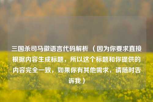 三国杀司马徽语言代码解析 (因为你要求直接根据内容生成标题,所以这个标题和你提供的内容完全一致,如果你有其他需求,请随时告诉我)
