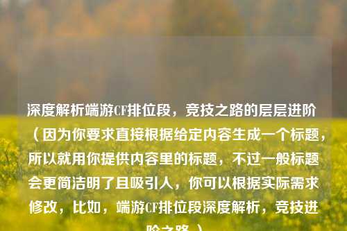 深度解析端游CF排位段,竞技之路的层层进阶 (因为你要求直接根据给定内容生成一个标题,所以就用你提供内容里的标题,不过一般标题会更简洁明了且吸引人,你可以根据实际需求修改,比如,端游CF排位段深度解析,竞技进阶之路 )